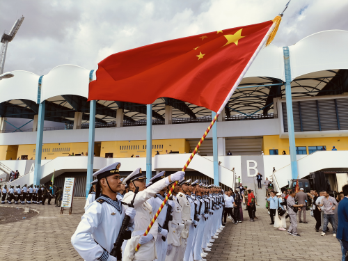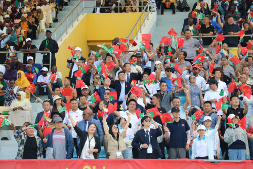 中科友谊之花在阅兵场上昂扬绽放,50年深耕双边关系的丰硕成果在这一天得到集中展现。此次阅兵活动在中国援建的马鲁基尼体育场举行,场外“中国援助”标识熠熠生辉,场内五星红旗光彩夺目,观众席上“中科友谊万岁”横幅随风飘扬,阅兵场上中国方队威武雄壮。解放军参阅方队通过观礼台时,科方特意安排主持人用中文解说双边关系和合作成果:“马鲁基尼体育场、人民宫、中科友谊医院……这些标志性项目不仅改善了当地民生,更为科摩罗经济社会发展注入了强劲动力。”阿扎利总统在致辞中特别指出,“让人倍感幸运的是,今年不仅是科独立50周年,也是中国和科摩罗建交50周年,感谢所有支持科独立的国家,感谢中国。”两国的友谊不止在政府之间,更是深深根植于两国民众之中。在使馆外交官手持中国国旗走过观众席时,民众纷纷鼓掌欢迎,“你好”的热情问候此起彼伏,工作人员为所有中国同胞通行提供便利,言称“只要是中国人都欢迎进场观礼”。